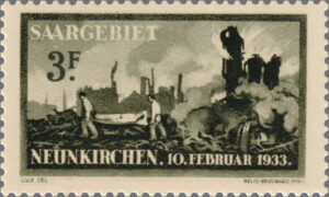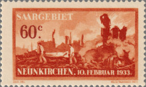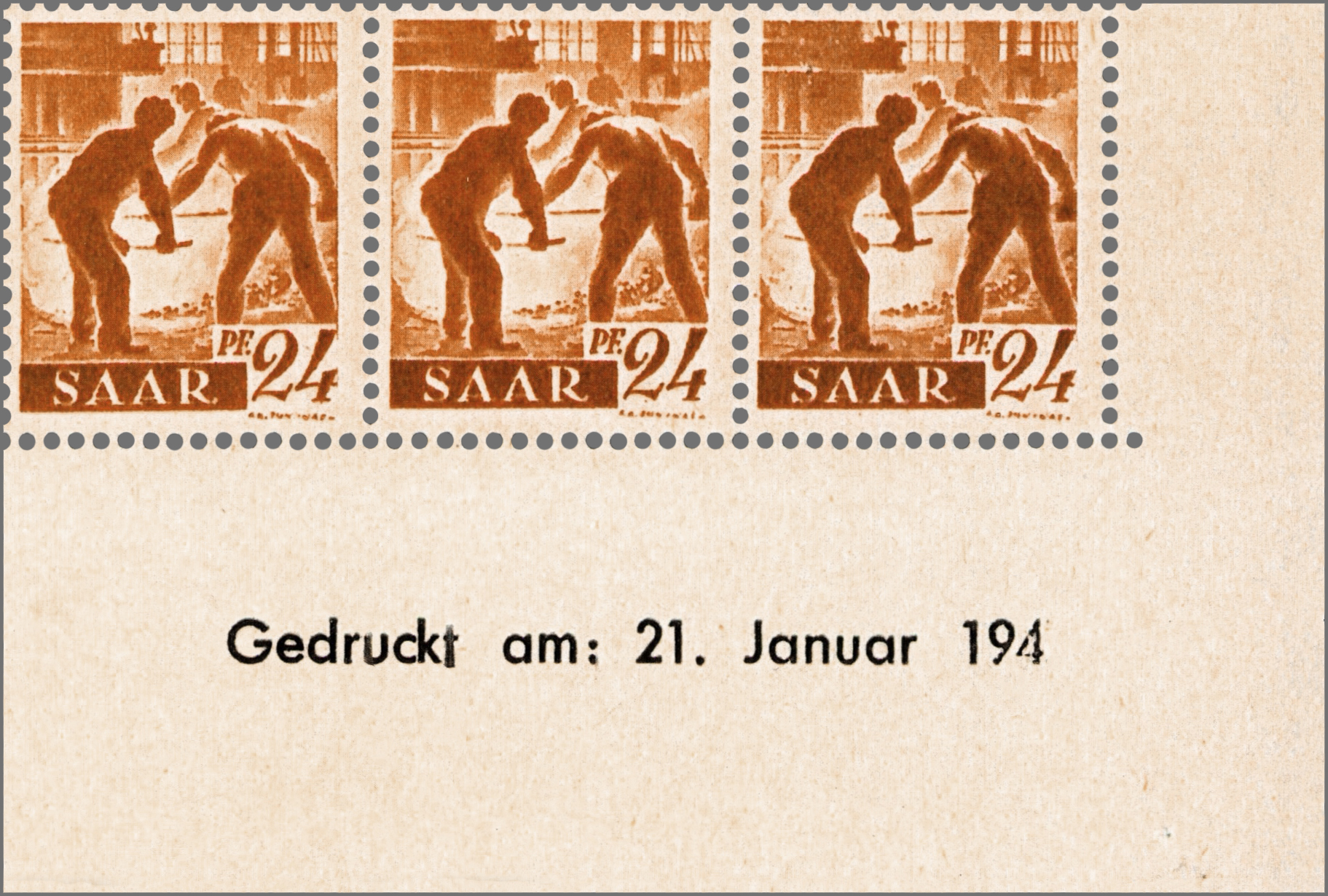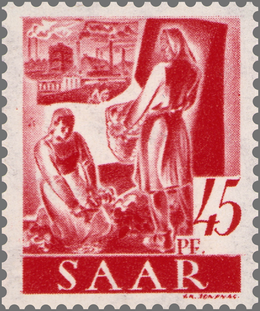 🇬🇧 In a nutshell: 80 years ago, foundations for the nascent Saarland were laid. 80 years ago, plans were drawn for and work started at the first stamp issue for the Saarland ‹Works and sights at the Saar›.