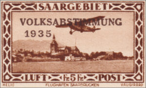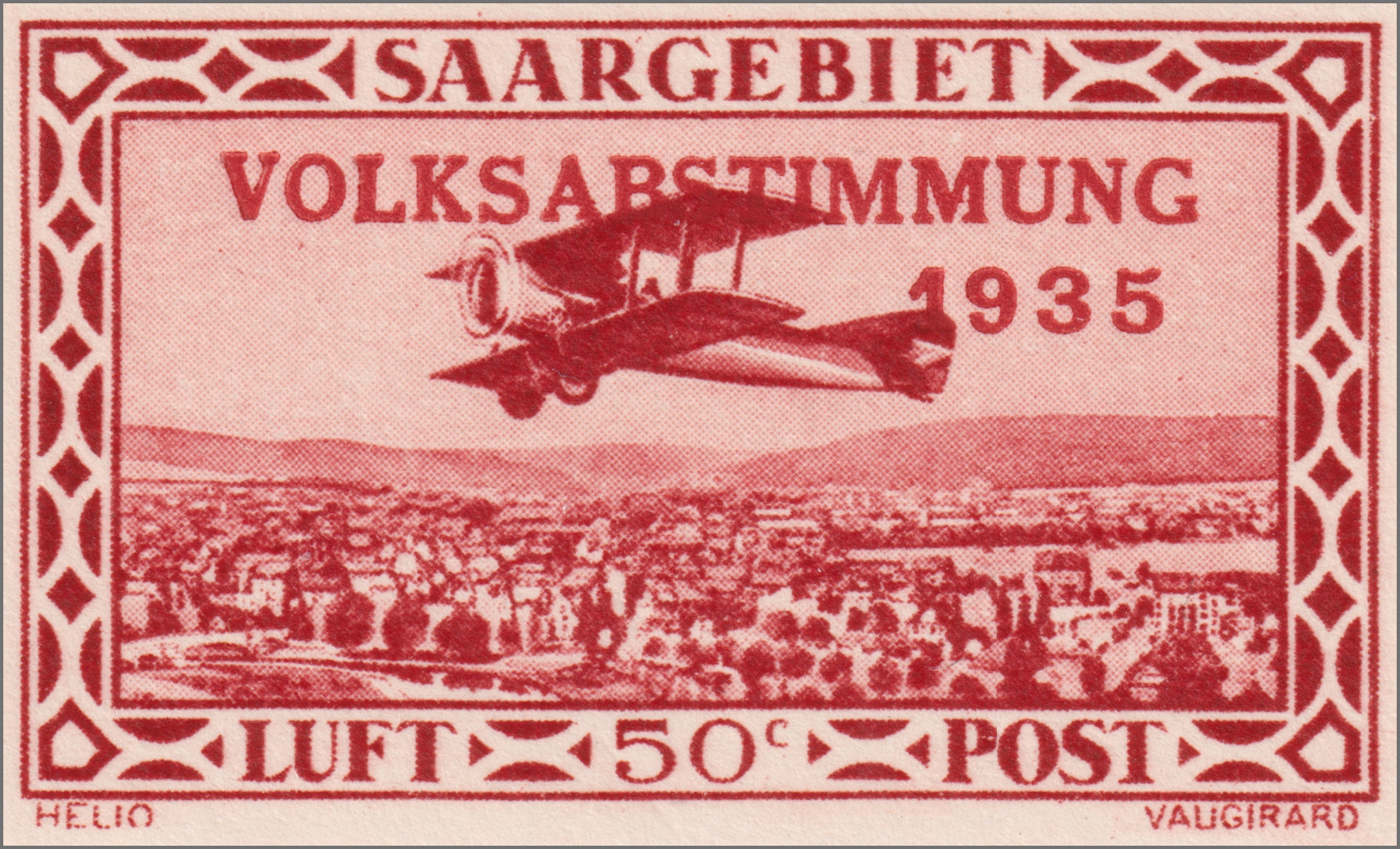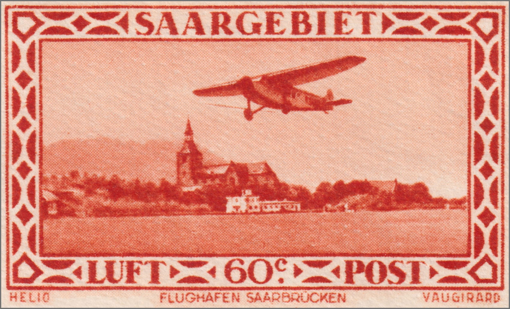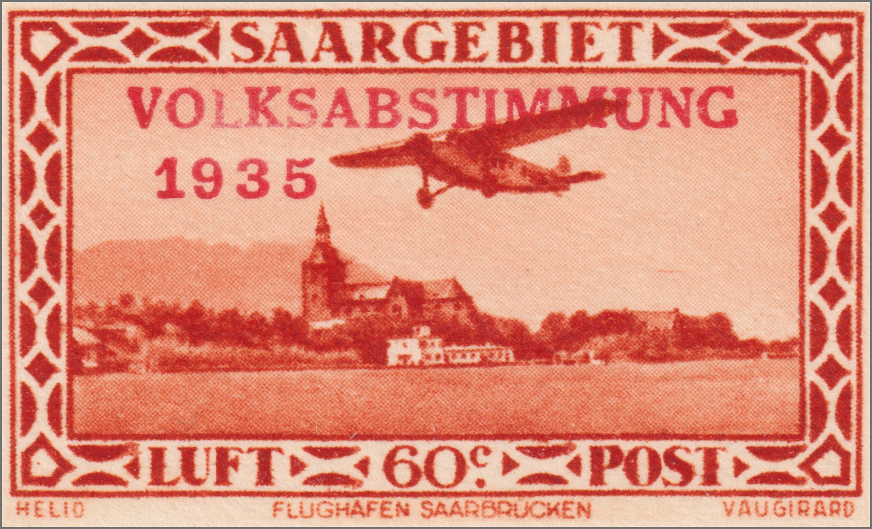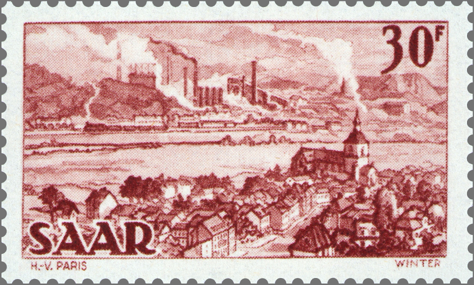 Both, the political history of the Saarland as well as the history of the stamp issues ‹Works and sights at the Saar› are inextricably entwined.