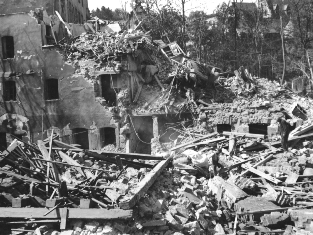 Über dem Eingang des Saarbrücker Rathauses weht das Sternenbanner. Saarbrücken ist nach 32 schweren Luftangriffen eine Trümmerwüste. 80 Prozent der Gebäude sind beschädigt oder zerstört. Die Wasser- und Energieversorgung längst zusammengebrochen. Etwa 7’000 Menschen hausen in den Ruinen und einigen Höhlen. 7’000 von über 130’000 vor dem Krieg.