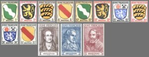 🇫🇷 En bref: Il y a 80 ans, les fondations de la Sarre naissante ont été posées. Il y a 80 ans, les plans ont été dessinés et les travaux ont commencé pour la première série de timbres de la Sarre intitulée « Metiers et sites de la Sarre ».